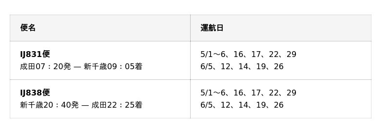 【成田-新千歳】(増便)