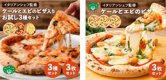 2.ケールとエビのピザ3枚セット:https://item.rakuten.co.jp/kiravege/pizza-01/