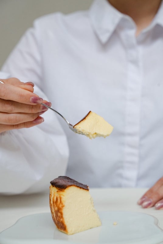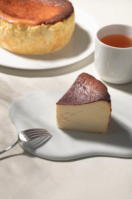 サトユリノチーズケーキのバスクチーズケーキは、外側の香ばしさと中のなめらかな口どけが特徴です。