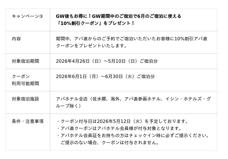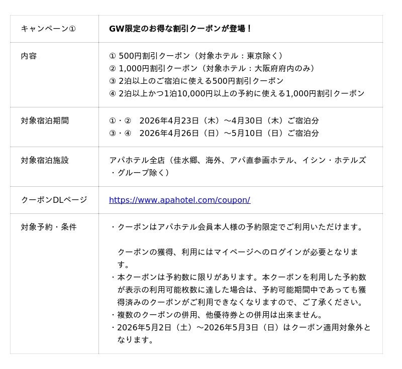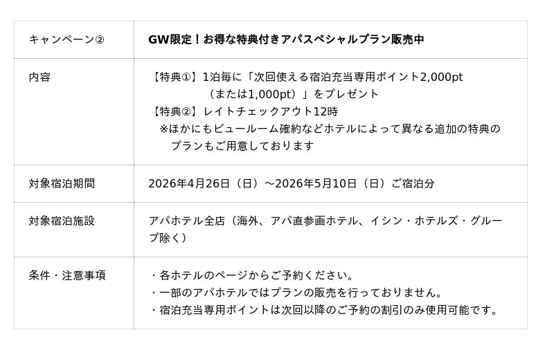 【アパホテルGW特集】 https://www.apahotel.com/news/detail/38311/