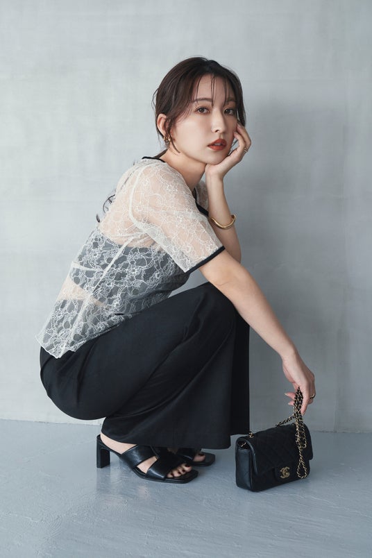 上品な肌見せで、大人でも挑戦しやすいバランスに仕上げています。30代・40代、そしてママになっても"自分のための服"を楽しみたい方へ届いたら嬉しいです。