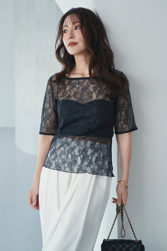 繊細な細糸で描かれた、センシュアルな表情の総レースカットソー。