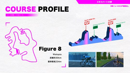 舞台となるコースはWatopiaの「Figure 8」。走行距離29.7km、獲得標高254m。