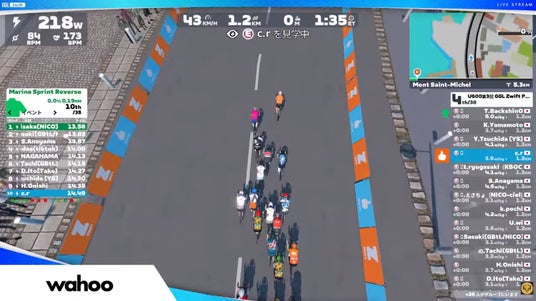 画面上のパワー表示は瞬時に赤く染まり、各選手は10 w/kgを超える驚異的な出力を記録。