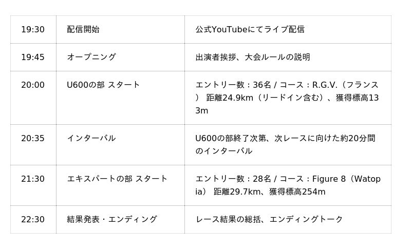 2つの異なる難易度とコースプロフィールを持つレースを連続して開催することで、本イベント内で多様なレース展開と戦術の妙を、視聴しても参加しても楽しむことができる構成となっています。