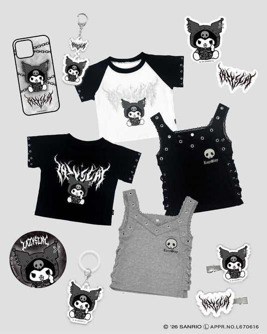 本イベントでは、サンリオの人気キャラクター「クロミ」とのスペシャルコラボレーションが実現。LAZYSLAYを身にまとった、ここでしか出会えない"パンクロックなクロミ"の描き下ろしデザインによるアパレル・雑貨を幅広く展開いたします。