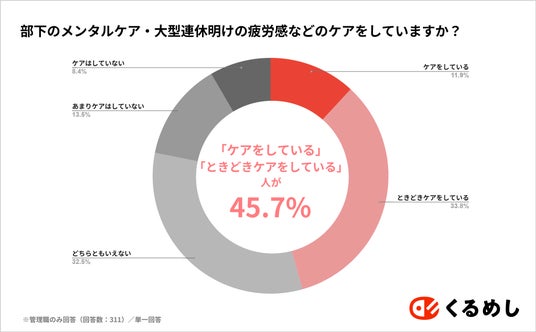 - 45.7%の管理職が部下のメンタルケア・大型連休明けの疲労感などのケアを実施