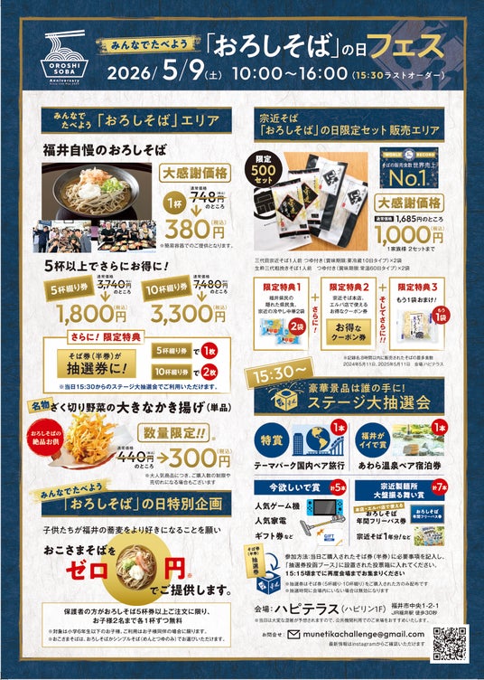次の麺文化を担う地域の子供たちが、より福井の蕎麦を好きになってもらえることを願い「おこさまそばゼロ円」企画も!