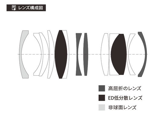 ・EDレンズ2枚、高屈折率レンズ3枚、非球面レンズ1枚を採用