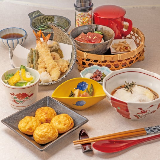 当店名物の玉子焼と特製醤油に付け込んだまぐろ丼、喉越し豊かなとろろそばを組み合わせた、暑くなる季節にぴったりのセットメニューです。