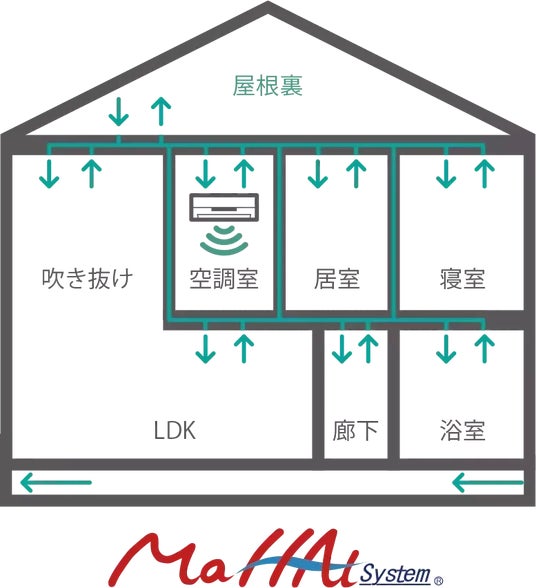 全館空調とは、家の中の空気を循環させ、家中の温度を一定に保つ冷暖システムのことです。