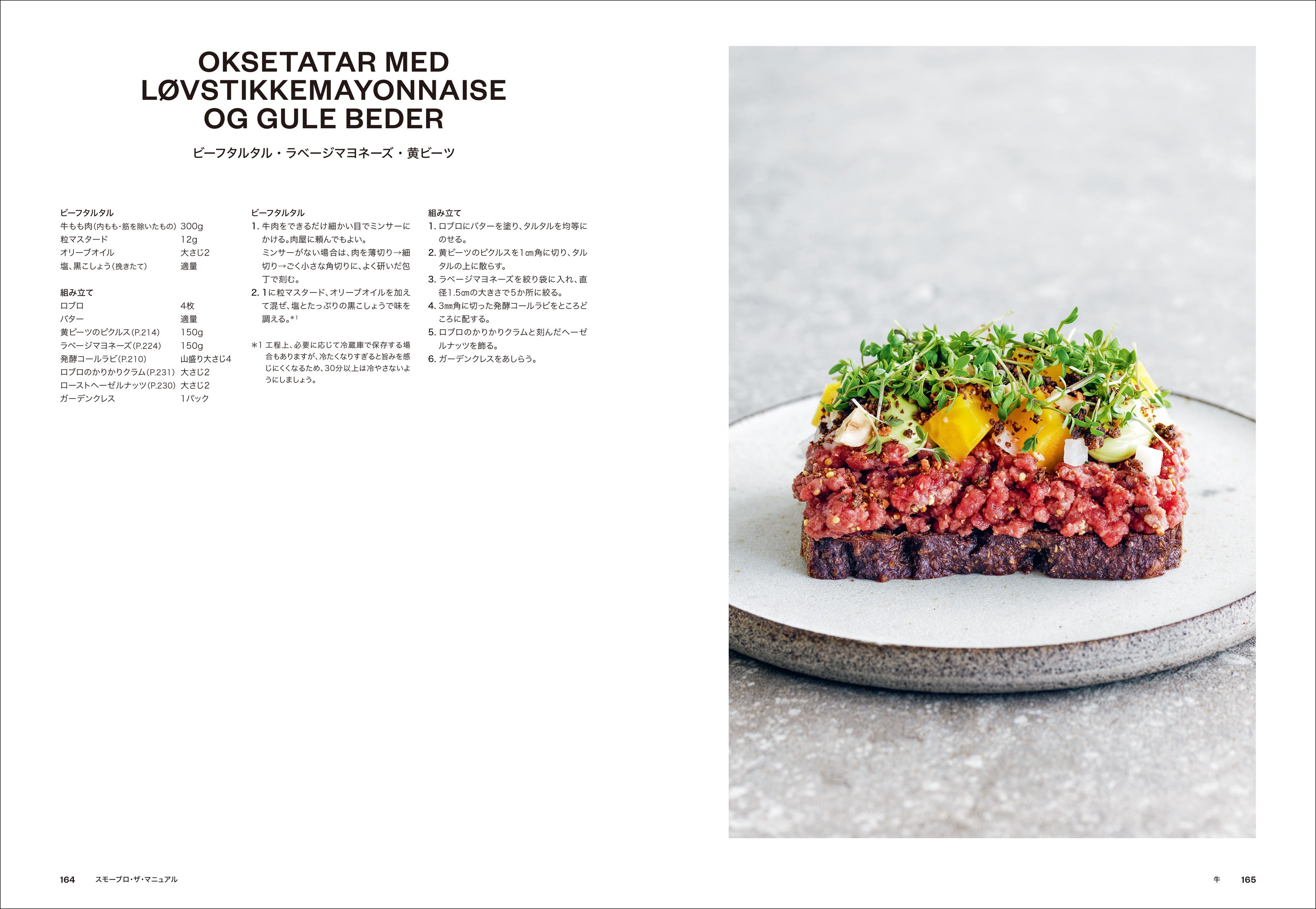 本書では、良質な原材料、季節感、手仕事を重んじ、伝統を尊重しながらも現代的な表現を切り拓いてきたデンマークを代表する料理人、アダム・オーマン氏によるガストロスモーブロ74点を掲載。