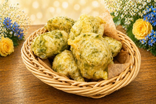 本場イタリアの「父の日」では、「パパ」に感謝の気持ちを伝える儀式として、「ゼッポレ」と名付けられた揚げ(もしくは焼き)菓子を食べる習慣が根付いています。19世紀前半にナポリで発祥したとされる「ゼッポレ」は、ドーナツとシュークリームの中間に位置するような仕立ての「スイーツ」スタイルもよく知られますが、『デルソーレ』で提供するのは、生海苔を発酵生地に練りこんで揚げた「おつまみ」スタイルで、お酒との相性も抜群です。