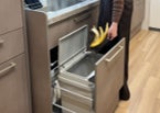シンクの下にゴミ箱が収納されているので、三角コーナーの生ゴミもさっと捨てられてとっても便利!扉と連動してゴミ箱のふたも開け閉めできます。