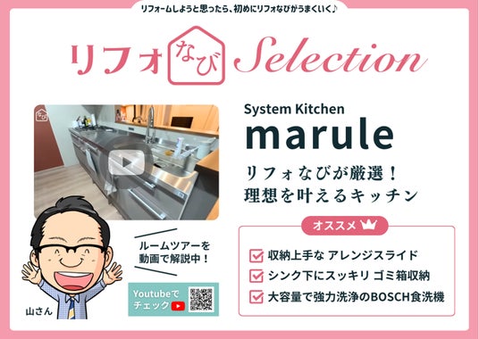 リフォーム情報を発信しているリフォなびの公式チャンネル「山さんのリフォなび俱楽部」にて今回リリースしたマルーレ「リフォなび Selection」の解説動画を配信いたしました。ぜひご覧ください。