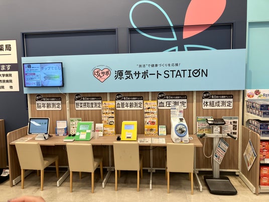 "チチヤス"とコラボした栄養応援アイスや冷凍介護食を新規導入するほか、介護用靴や歩行器、医薬品の品揃えを拡大します。また、体の状態を測定できる「源気サポートステーション」では、野菜摂取度測定器と脳年齢計の2台を新たに導入し、お客さまの健康をサポートします。