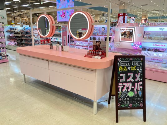 また、プチプラコスメやアジアンコスメをお気軽にお試しできる「ビューティカウンター」で商品の色味や質感を試して、ご自身に合った商品を選べる売場を提案します。さらに、大型デジタルサイネージを設置し新商品を紹介するなど、お客さまの欲しい情報をタイムリーにお届けします。
